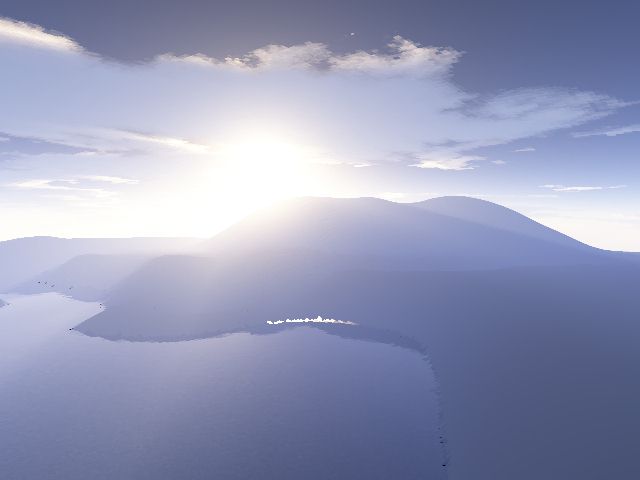 Eine andere Landschaft aus grö฿erer Höhe. Wir fliegen der Morgensonne entgegen; Nebel liegt noch über dem Grund.